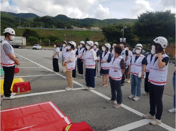 훈련 주요 내용은 △메시지 상황 전파 및 보고체계 △신속대응반 운영에 따른 모바일 상황실 초대·수신 확인 및 출동준비 △구급차량 출동 요청 및 현장에 물품 운반 △현장응급의료소 설치 △사상자(분류, 처치, 이송)반 편성 △임시영안소 설치 △ 현장응급의료소장(보건소장) 운영 결과 브리핑 등이다.