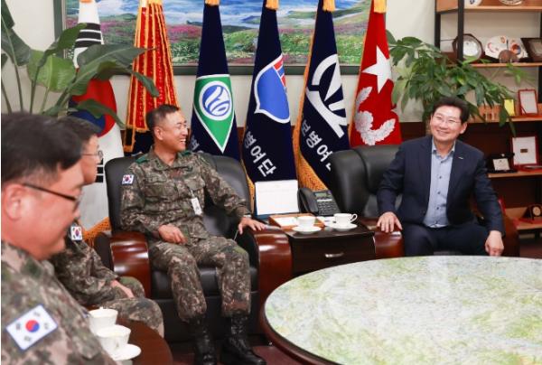 이 시장은 이어 방문한 동원전력사령부(소장 전성대)와 제55보병사단에서도 안보의 중요성을 강조하며 이야기를 나눴다.