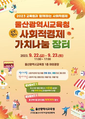 울산광역시교육청은 22~23일 시교육청 야외광장에서 사회적경제 가치나눔 장터를 연다.