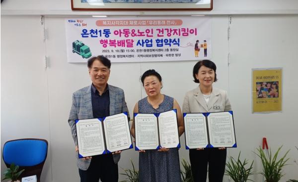 동래구 온천1동은 지난 18일 지역사회보장협의체, 따뜻한 밥상과‘아동&노인 건강지킴이 행복배달’사업 업무 협약을 체결했다고 밝혔다.