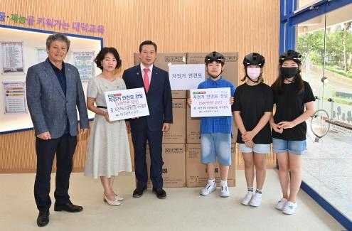 지난 19일에는 대덕초등학교 학생들을 대상으로 자전거 안전 수칙 등 안전교육을 실시하고 5·6학년 학생들 대상 자전거 안전모 전달식을 가졌다.