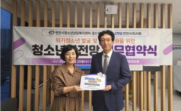 천안시청소년상담복지센터는 지난 20일 천안시의사회와 천안시 청소년들의 건강한 성장지원을 위한 업무협약을 체결했다고 밝혔다.