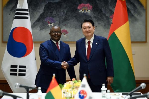 제78차 유엔총회 고위급 회기 참석을 위해 뉴욕을 방문 중인 윤석열 대통령은 9월 21일 오후 '우마루 시소쿠 엠발로(Umaro Sissoco Embal?)' 기니비사우 대통령과 취임 이후 처음으로 정상회담을 가졌다.