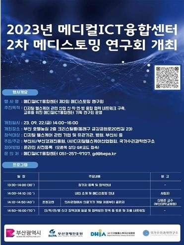 부산시(시장 박형준)는 오늘(22일) 오후 2시 부산 호텔농심 2층 크리스탈룸에서 ‘2023년 제2회 메디스토밍(Medi-Storming) 연구회’를 개최한다고 밝혔다.