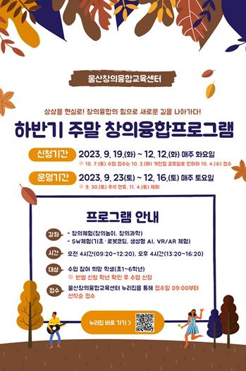 울산교육연구정보원(원장 차영기) 울산창의융합교육센터는 초등학생을 대상으로 하반기 주말 창의융합 프로그램을 운영한다.