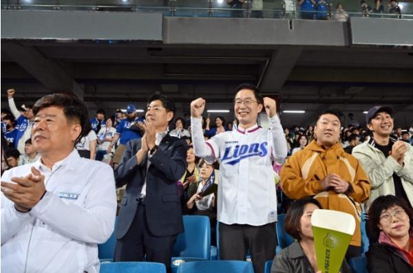 이날 야구장에서는 깜짝 이벤트로 임종식 경상북도교육감의 시구와 올해 신규 발령받은 용성초등학교 선생님의 시타 장면을 선보였다. 교사가 행복해야 아이들이 행복할 수 있다는 진리를 실천하고자 마련된 오늘 행사에서 교사들이 위축되지 않고 교육공동체가 함께 성장해 나가자는 응원을 담아 이벤트를 멋지게 치렀다.