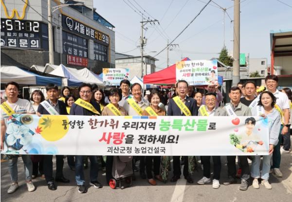 충북 괴산군청 농업정책국 직원들이 추석맞이 우리지역 농산물 팔아주기 캠페인을 실시했다.