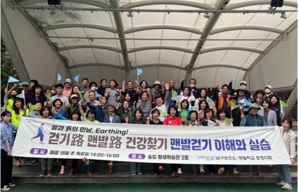 포항시 남구보건소는 맨발학교 포항지회가 함께 지난 21일 송도평생학습관 및 송도솔밭에서 시민 70여 명을 대상으로 ‘걷기路 맨발路 건강 찾기 프로그램’을 실시했다.