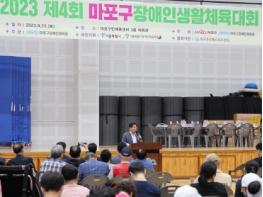 박강수 마포구청장은 23일 오전 마포구민체육센터에서 열린 ‘2023년 제4회 마포구 장애인생활체육대회’에 참석해 선수들을 격려했다.