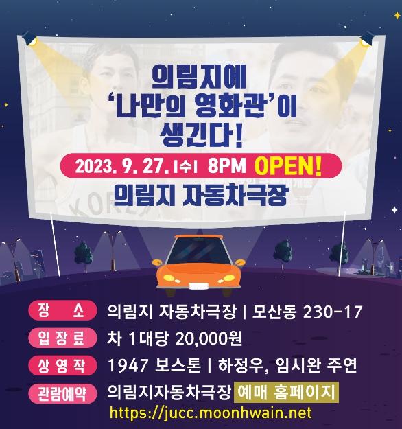 의림지 자동차 극장의 첫 공식 개봉작으로는 배우 하정우와 임시환 주연의 ‘1947 보스톤’이 상영될 예정이며, 앞으로는 일반영화 상영뿐만 아니라 의림지 문화재 야행, 농경문화 예술제 등 다양한 문화행사와 연계하여 의림지를 찾는 제천시민 및 관광객에게 다양한 문화 영상 콘텐츠를 제공할 계획이다.
