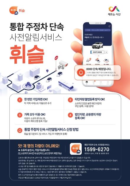 서비스는 지역 통합 주정차 단속 사전알림 앱(휘슬)을 통해 진행된다.