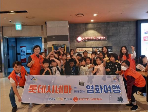 온양3동 행복키움추진단이 지난 22일 롯데시네마 아산 터미널점의 후원으로 추석 명절을 맞이해 권곡동에 있는 하늘꿈지역아동센터 아동 15명과 영화를 관람하는 시간을 가졌다.