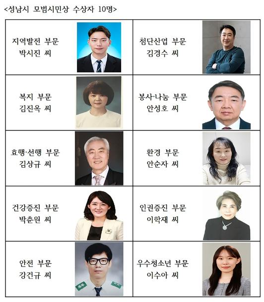 성남시는 시정 발전을 위해 애쓴 모범시민 10명을 선정했다고 25일 밝혔다.