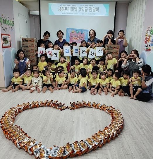 부산시 금정구 부곡2동에 소재하고 있는 공립 삼한골든뷰 어린이집은 금정 프리마켓 수익금과 라면 20박스를 부곡2동 행정복지센터에 전달했다.