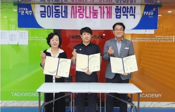 파주시 금촌2동과 지역사회보장협의체는 21일, 라온태권도(금촌점)와 ’사랑나눔가게 업무 협약식을 가졌다.