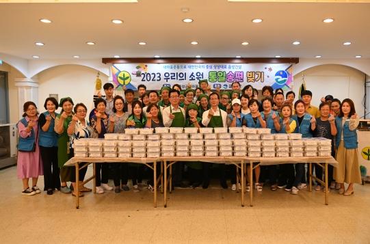 2021년부터 시작해 올해로 세 번째를 맞이한 이번 행사는 추석 명절을 맞아 음성군 내 거주하는 새터민 및 사할린 동포들과 함께 손을 모아 빚은 송편을 새터민과 사할린 이웃 200가구에 전달됐다.