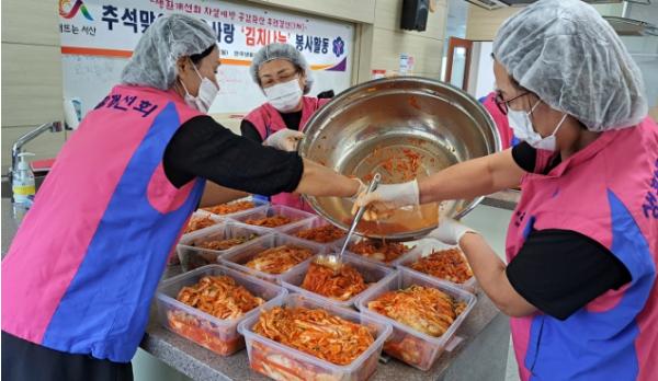 충남 서산시는 생활개선서산시연합회가 자살예방과 생명존중 문화를 확산하기 위해 추석맞이 이웃사랑 김치나눔 꾸러미 행사를 25일 농업기술센터에서 진행했다고 밝혔다.