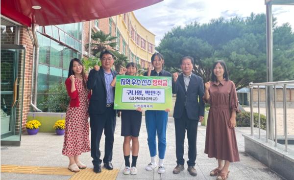 이날 제52회 전국소년체육대회 및 추계 전국 초?중?고 육상대회에서 우수한 성적을 거둔 사천여자중학교 소속 구나영 선수와 박민주 선수에게 각각 30만원씩 총 60만원의 장학금을 전달했다.