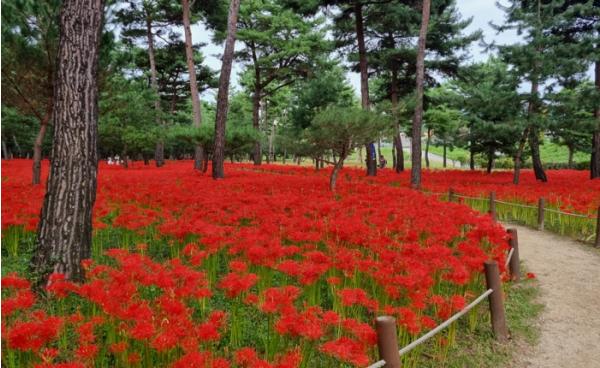 군 군계자는 “역사가 깃든 소나무 숲에 진홍색의 꽃무릇이 관광객과 군민에게 아름다운 경관을 제공할 것으로 기대된다”고 말했다.