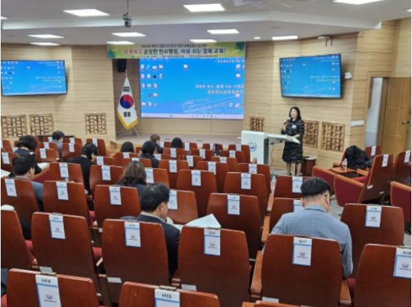 경북교육청은 25일부터 26일까지 경상북도교육청연수원에서 도내 중등 인사 담당 교육전문직원 42명을 대상으로 따뜻하고 공정한 인사행정 구현을 위한 역량 강화 연수를 실시했다.