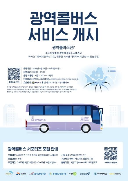 시흥시가 27일부터 국토교통부 대도시권광역교통위원회에서 추진하는 수요응답형 광역교통서비스 광역콜버스 운행을 전국 최초로 개시한다.