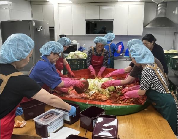서울 성북구 동선동 주민자치회가 지난 20일 동선동주민센터 공유 부엌에서 어려운 이웃들을 위한 사랑의 김치를 담갔다. 이날 포장까지 끝마친 김치를 관내 경로당을 비롯해 돌봄 취약계층 이웃 60여 가구에 전달했다.