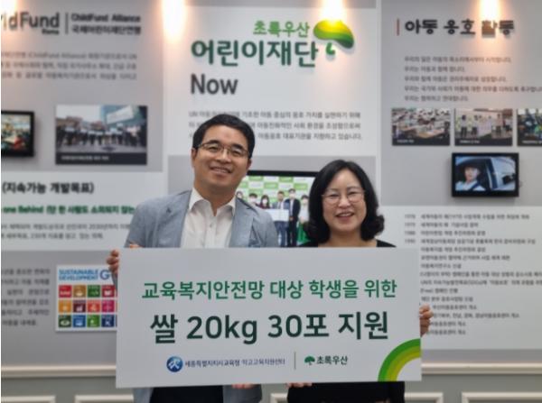 이번 추석에는 초록우산 세종지역본부가 교육복지 학생들의 풍요로운 명절을 위해 햅쌀 20kg 30포를 후원했다.