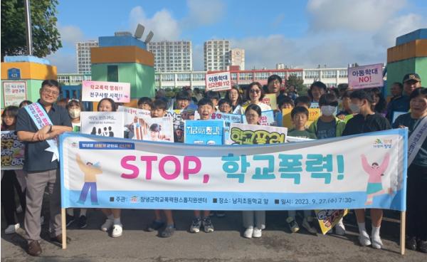 창녕군은 27일, 남지초등학교 앞에서 등굣길 학생과 학부모를 대상으로 아동학대 및 학교폭력 예방을 위한 관계기관 합동 캠페인을 실시했다고 밝혔다.