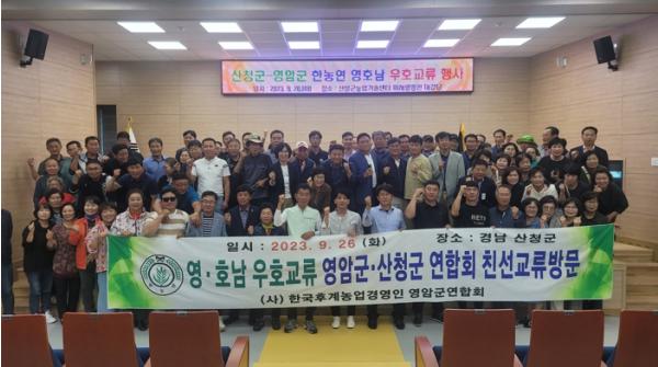 한국후계농업경영인 산청군연합회는 지난 26일 영암군 연합회 회원들을 초청해 영호남 우호교류 행사를 개최했다고 27일 밝혔다.