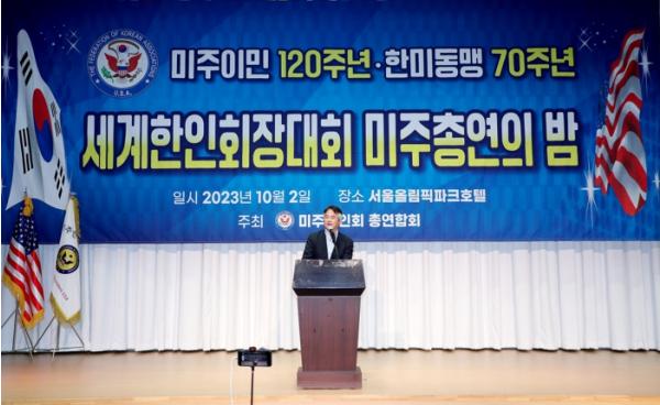 이동환 고양시장은 축사를 통해 “미주한인회총연합회는 한인회 중에서도 가장 신뢰받고 모범적인 한인회로서, 동포들의 권익 신장과 대한민국 공공외교에 헌신하며 한인들의 든든한 버팀목이 되어주고 있다.”라며 “고양시는 경기북부 최초로 경제자유구역 후보지로 선정됐다. 성공적인 첨단 경제 복합단지 조성을 위하여 미주 한인사회와 더욱 적극적인 경제교류와 협력을 이어나가겠다.”라고 말했다.