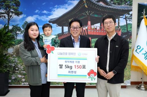 인제군 농업인 최현성씨는 지난 27일 인제군청을 방문해 어려운 이웃들을 위해 사용해 달라며 햅쌀 150포(5kg)를 전달했다.