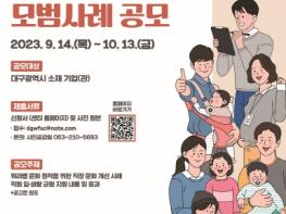 대구광역시 소재 기업·기관을 대상으로 가족친화제도, 유연근무제 등 워라밸 지원 프로그램 활용사례, 워라밸 제도 및 프로그램으로 직장 문화를 개선한 사례, 워라밸 지원 프로그램을 통한 직원역량 강화 및 생산성 향상 사례 등 워라밸(일·생활 균형) 지원을 통한 기업의 성장 사례를 공개 모집한다.