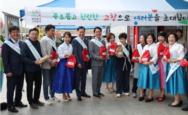 고창군이 추석연휴 첫날인 28일 고창고인돌휴게소에서 고향을 찾은 귀성객을 대상으로 ‘제50회 모양성제’와 ‘2023 세계유산도시 고창 방문의 해’ 홍보에 나섰다.