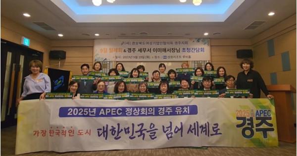 2025 APEC 정상회의 경주유치를 위해 100만 서명운동 전개 등 전 시?도민들의 의지가 뜨겁게 타 오르고 있는 가운데 (사)경북여성기업인협의회경주지회는 지난 19일 성호리조트에서 이미애 경주세무서장 초청 현장 소통 간담회를 개최 하면서 APEC 정상회의 경주유치의 강력 지지와 응원을 보냈다.