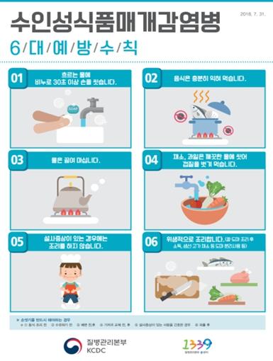 이외에도 장염비브리오, 장병원성대장균과 같은 다양한 수인성·식품매개감염병이 있으며, 손 씻기, 음식 익혀먹기, 물 끓여마시기, 생선·고기·채소 도마를 분리하여 사용함으로써 일상 속 간단한 실천으로 예방할 수 있다.