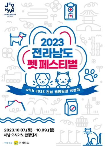 전라남도는 반려동물 인구 1천만명 시대를 맞아 오는 7일부터 9일까지 해남 오시아노 관광단지 일원에서 반려동물과 함께 다양한 캠핑 행사를 즐기는 2023 전라남도 펫 페스티벌을 개최한다고 밝혔다.