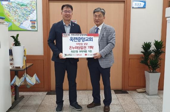연수구 옥련중앙교회는 지난 26일 추석을 맞아 옥련1동 지역사회보장협의체와 옥련2동 지역사회보장협의체에 온누리상품권 50만 원을 각각 기탁했다.