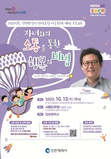 인천광역시가 오는 10월 12일 저녁 7시 구월동 샤펠드미앙에서 ‘자녀와의 소통을 통한 행복의 비법’이라는 주제로 김경일 아주대 심리학과 교수(사진) 초청 강연을 마련했다.