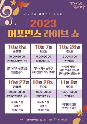 대전 서구는 오는 6일부터 다음 달 9일까지 지역 상권 활성화를 위한 ‘2023 길거리 퍼포먼스 라이브 쇼’를 개최한다.