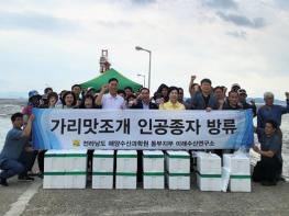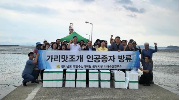 전남도해양수산과학원은 또 수산물 지리적표시 품목으로 등록된 순천만 가리맛조개를 10월 말까지 100만 마리를 방류한다는 목표다. 이미 지난 9월 순천만 서식지에 우량종자 80만 마리를 방류했다.