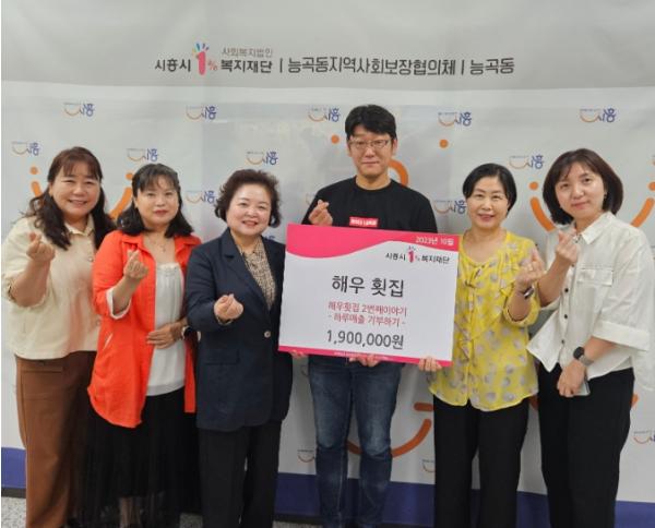 능곡동 행정복지센터가 지난 4일 능곡동 해우 횟집과 함께 ‘하루 매출 기부하기’를 통해 어려운 이웃에 사랑의 후원금(190만 원)을 전달했다.