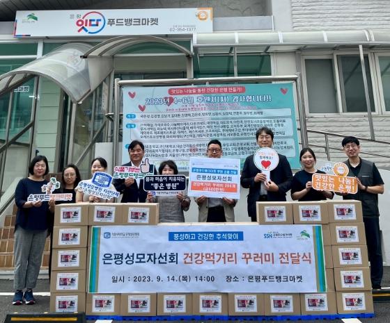 은평구는 지난달 14일 은평성모자선회와 함께 푸드마켓 이용자 건강먹거리 꾸러미 지원을 위한 성금 전달식을 가졌다고 밝혔다.