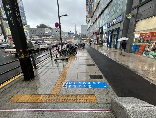 용인특례시 수지구 상현3동이 신분당선 상현역 보행자 보도에 ‘길안내 인도블록’을 설치했다고 5일 밝혔다.