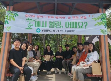 북구 보건소 “아가·맘 센터”에서는 임산부의 스트레스 완화, 산전·후 우울증 예방, 정서적 안정 등 임산부의 건강증진을 도모하여 건강한 출산 및 행복한 육아에 기여 하고자 아름다운 생태 숲 자연 속에서 엄마와 아기가 함께 행복해지는『숲 힐링 교실』을 운영 중이다.