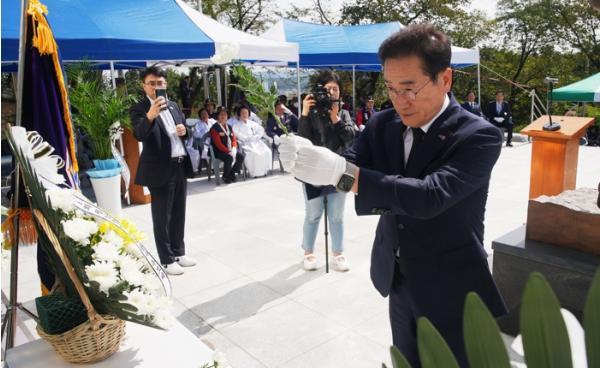 이날 행사에는 기관단체장, 보훈단체 회원 및 시민 등 120여 명이 참석했으며 국민의례, 헌화?분향, 기념사, 격려사 순으로 진행됐다.
