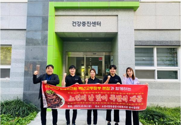 고양시향동종합사회복지관이 6일, 노인의 날을 기념해 ㈜백년가에프앤씨 백년교동짬뽕 본점과 함께 복지관을 이용하는 어르신들에게 중식 100인분을 대접했다.