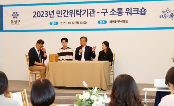 대전 유성구는 지난 6일 라미컨벤션에서 ‘2023년 민간위탁기관-구 소통 워크숍’을 개최했다고 밝혔다.