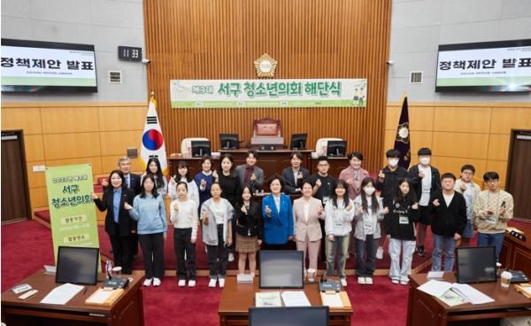 대전 서구의회는 7일 의회 본회의장에서 청소년의원과 서구의원, 학부모 등이 참석한 가운데 제3대 청소년의회 모의의회와 해단식을 개최했다.