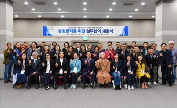 이번 협약은 영주문화관광재단과 미주현직한인회장협의회의 인적, 물적 자원의 활용을 통한 공동 발전을 도모하고자 마련됐다. 협약식에는 박남서 영주문화관광재단 이사장, 로라전 미주현직한인회장협의회 의장을 비롯한 관계자 50여 명이 참석했다.
