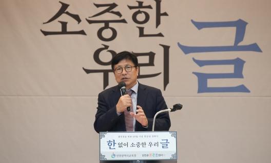 도성훈 교육감은 “한글날 행사를 시작한 이유는 시대적 대전환 때문”이라며 “한글을 아는 것은 발 딛고 서 있는 우리 문화를 아는 것이고, 우리 것을 알 때 글로벌 역량도 자란다”고 말했다.